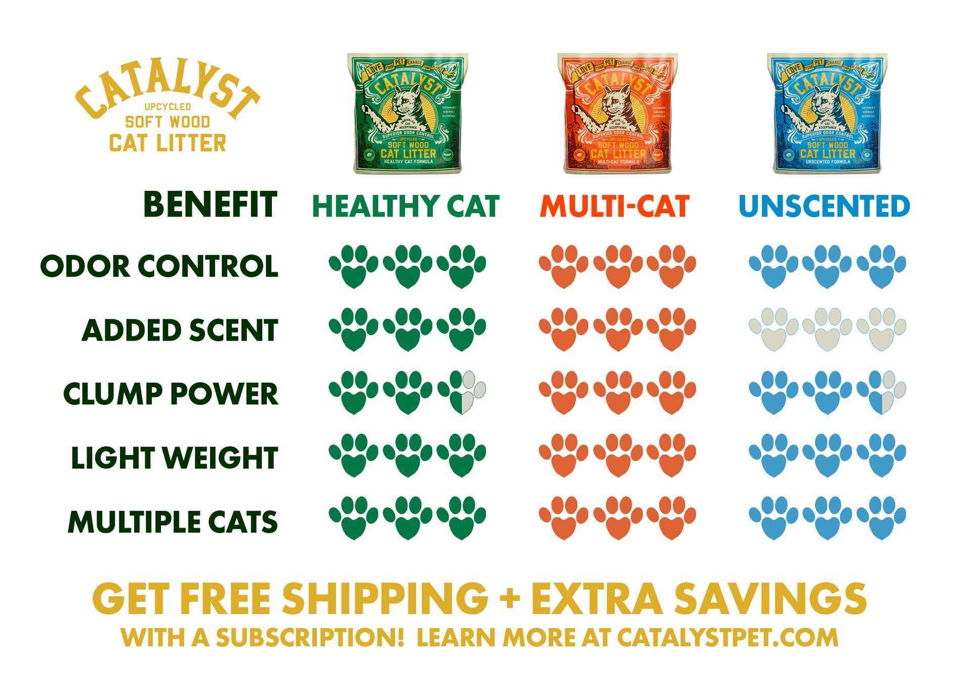 Catalyst is the only cat litter engineered from upcycled soft wood fiber to offer performance and peace of mind. LBP loves and uses Catalyst litter!